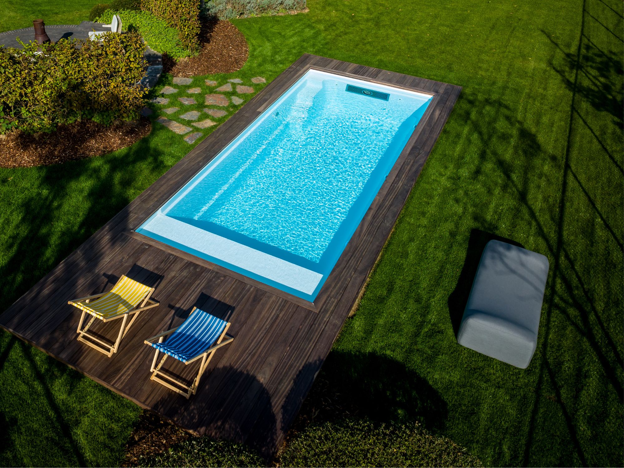 Neemt minder ruimte in dan een normaal zwembad, hierdoor ook geschikt voor kleinere tuinen.